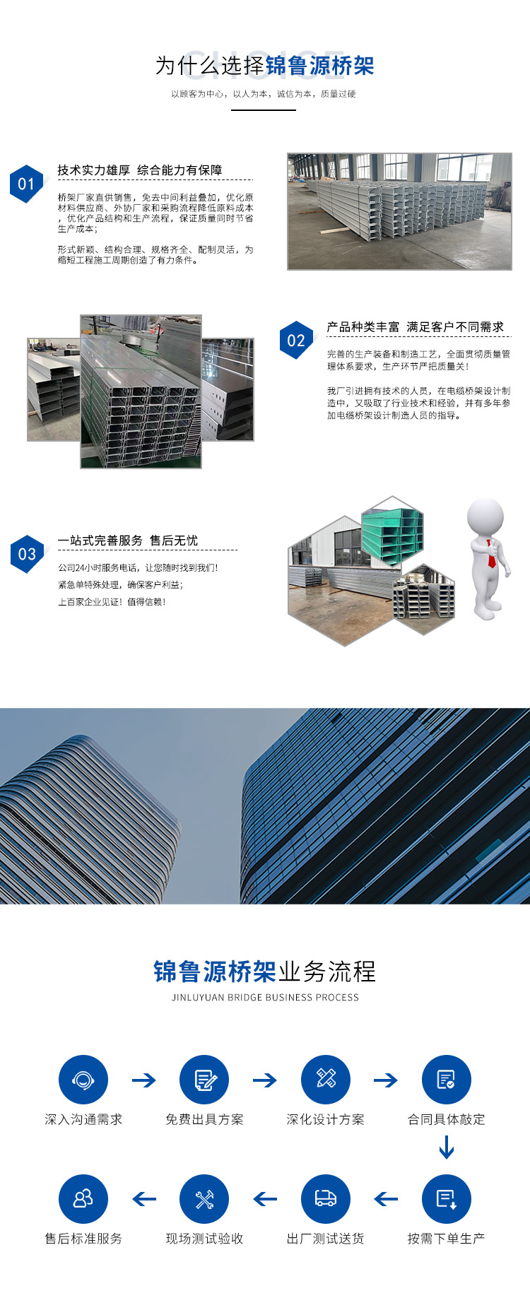 安徽錦魯源新材料科技有限公司,位于皖東明珠一安徽省天長(zhǎng)市,毗鄰南京、揚(yáng)州,占地面積50000平方米,現(xiàn)有員工180、專(zhuān)業(yè)專(zhuān)業(yè)生產(chǎn)高分子復(fù)合型橋架,高分子合金橋架,熱浸鋅橋架,噴塑橋架,鋁合金橋架,不銹鋼橋架,玻璃鋼復(fù)合型橋架,玻璃鋼橋架等。本公司致力于研發(fā)新型高效環(huán)保材料,目前針對(duì)高分子復(fù)合型橋架具備新型完整的專(zhuān)利及豐富的生產(chǎn)經(jīng)驗(yàn),年產(chǎn)能已超百萬(wàn)米。